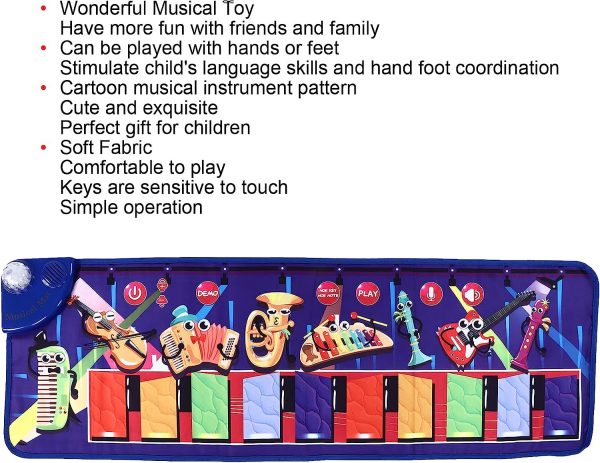 Covorasul muzical este fabricat din material moale, sigur și prietenos cu pielea, confortabil de jucat, iar tastele sunt sensibile la atingere.