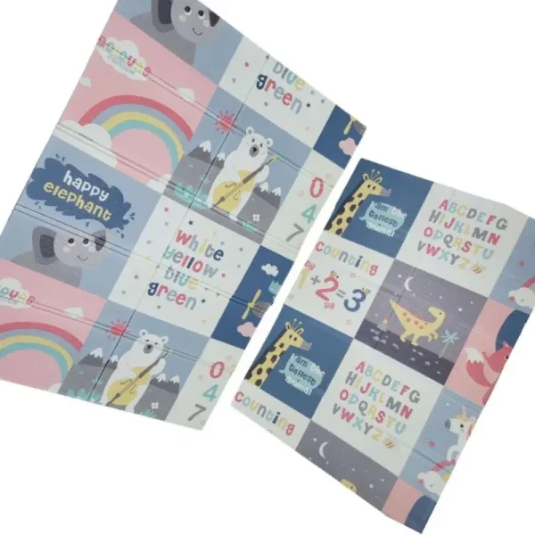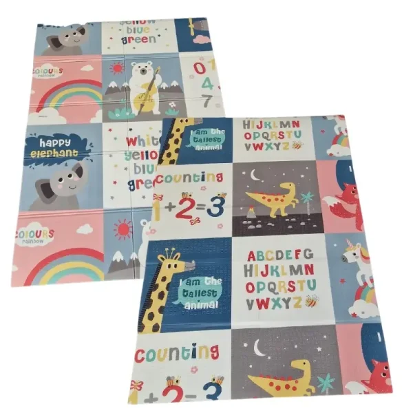 - Covorul poate fi pliat, ceea ce il face ușor de transportat și depozitat. Aceasta este o caracteristică convenabilă pentru părinți, deoarece poate fi utilizat acasă sau luat cu ei în călătorii și excursii.