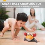 Crabul colorat, cu ochi mari, atrage atenția bebelusilor, chiar și atunci când cei mici nu pot inca merge.