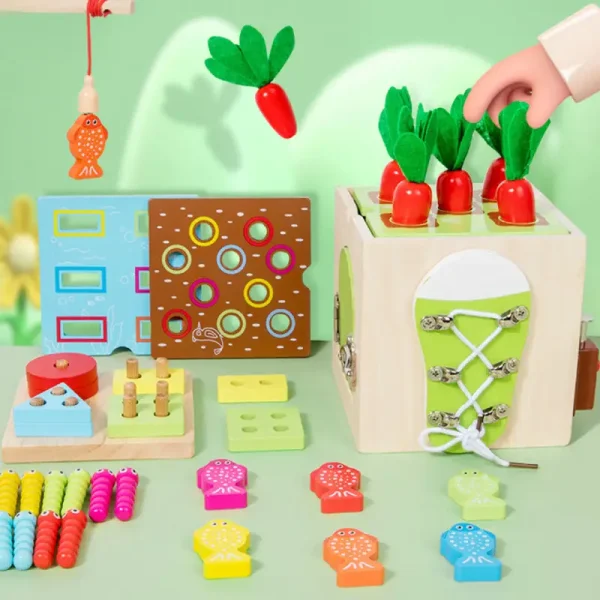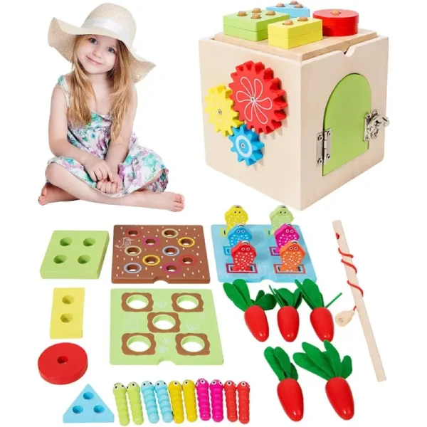 Cub Educativ din Lemn Multifunctional Montessori este distractiv,dar,in acelasi timp,si o jucarie educativ-instructiva.