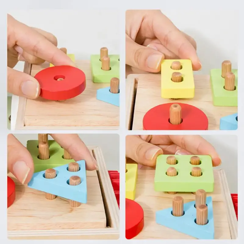 - sortator forme geometrice cu 4 coloane pentru invatarea formelor geometrice si motricitate fina