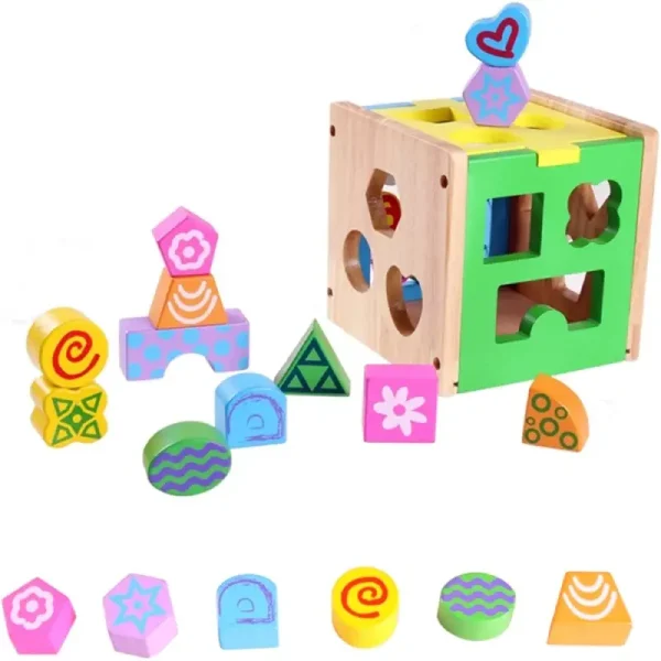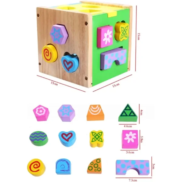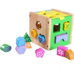 Cub Educativ Sortator Forme Jucarie din Lemn – Sortare forme, numere și culori