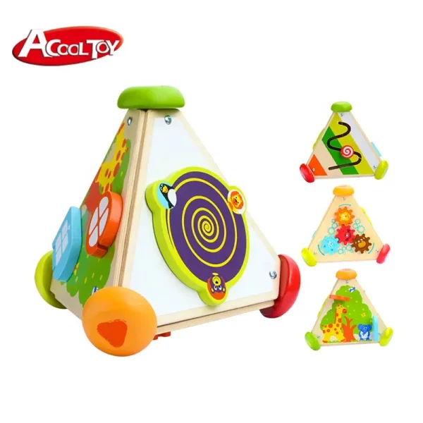 Centru de activități din lemn solid și robust, cu activități compacte într-o dimensiune ideală și ușor de gestionat pentru bebelusi.