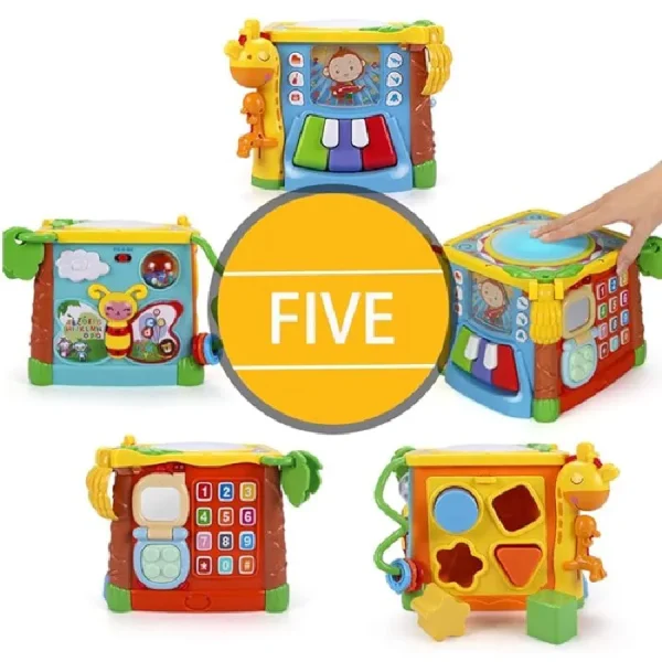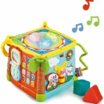 - Activități educaționale: Cubul include activități educaționale, cum ar fi sortator culori sau forme, pentru a stimula învățarea.