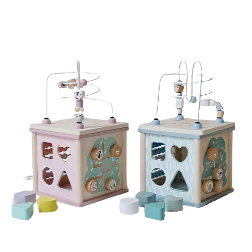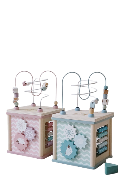 Jucaria tip Montessori cub multifunctional ii va tine mult timp ocupati cu diversele ei activitati.