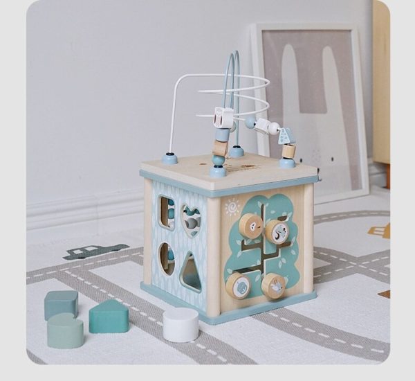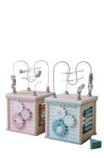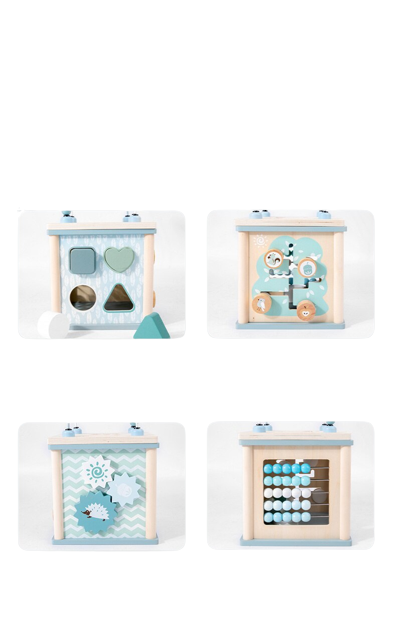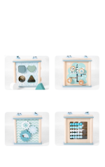 Cubul multifunctional are diferite activitati,care stimuleaza curiozitatea copilului,provocandu-l sa se intrebe cum functioneaza fiecare latura.
