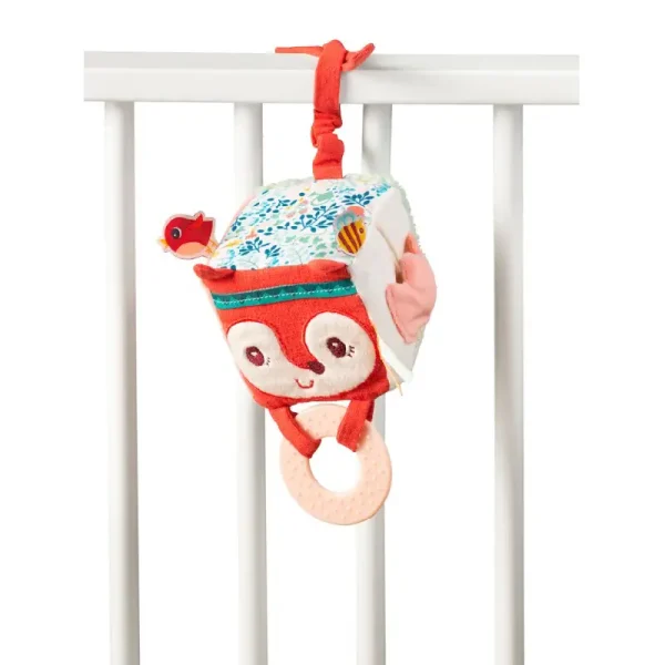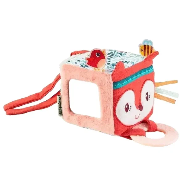 Cubul are un design jucăuș cu ilustrații prietenoase, cum ar fi vulpea, albinele și păsările, care atrag atenția bebelușului.
