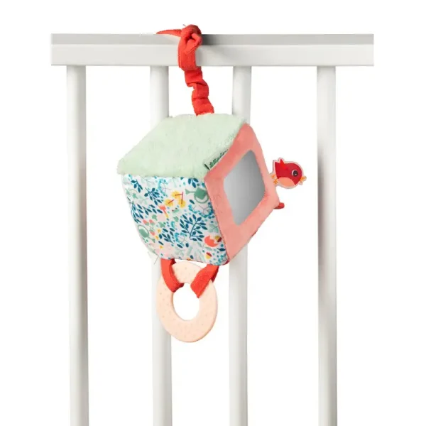 Fabricat din materiale sigure, moi și plăcute la atingere, acest cub stimulează curiozitatea copilului prin culori, texturi și sunete captivante.