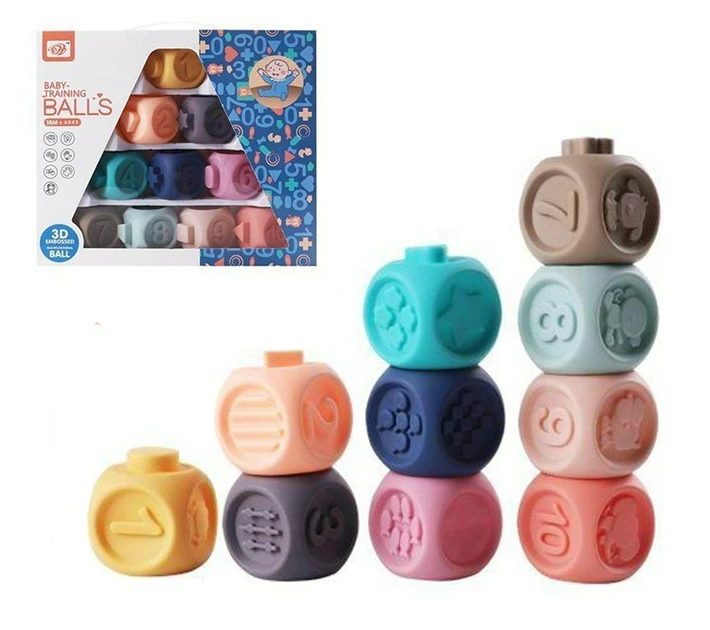 Cuburi Silicon 3D Jucarie Senzoriala Bebe