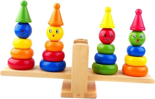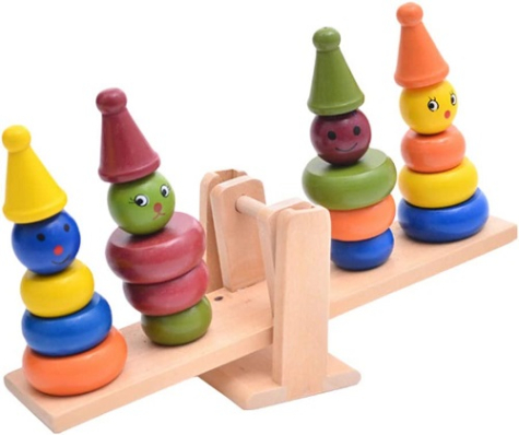 Jucarie pentru Copii Balanta cu clovni cu ajutorul careia copiii vor invata notiuni despre echilibru si greutate. Vor pune in talerele balantei greutati si vor incerca sa le echilibreze.