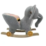 Elefant Balansoar Muzical Tip Sanie cu Spatar si Roti este o jucărie captivantă pentru copii, care îi ajută să se distreze și să dezvolte abilități motorii și de echilibru în timp ce ascultă muzică și se balansează înainte și înapoi.