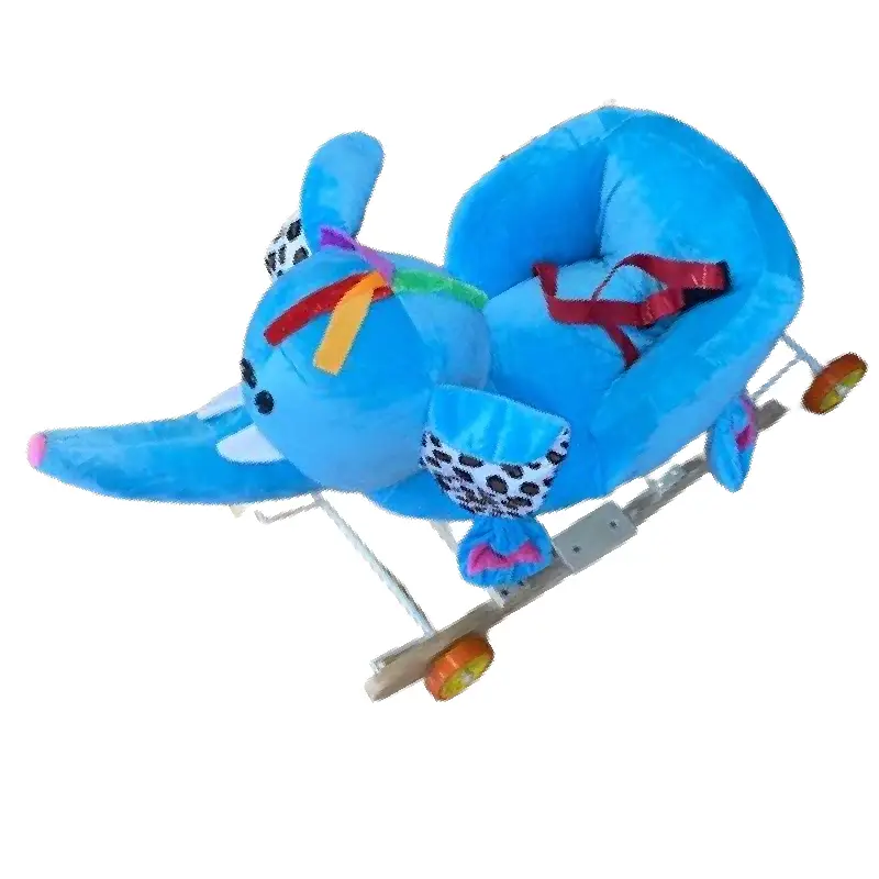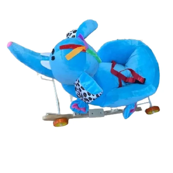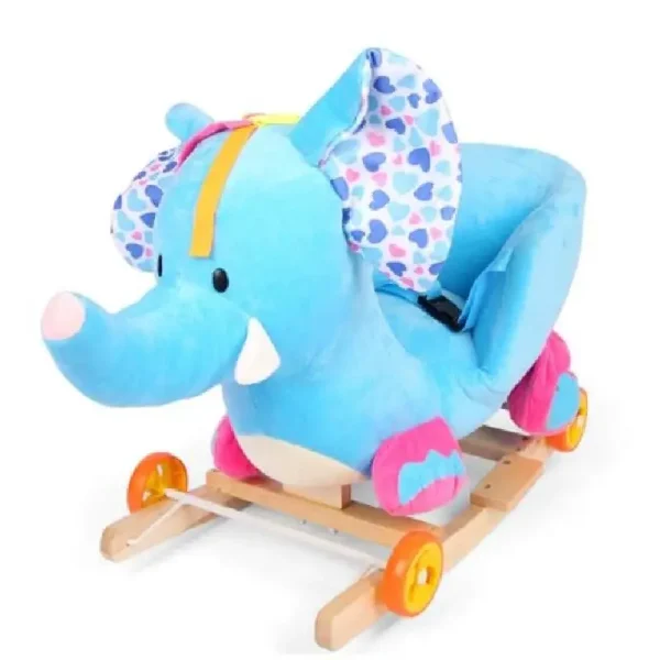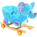Caracteristici Elefant Bleu Balansoar Muzical cu Spatar si Roti :