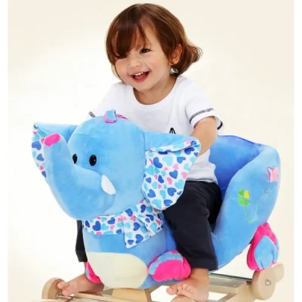 Elefant Bleu Balansoar Muzical cu Spatar si Roti este o jucărie captivantă pentru copii, care îi ajută să se distreze și să dezvolte abilități motorii și de echilibru în timp ce ascultă muzică și se balansează înainte și înapoi.
