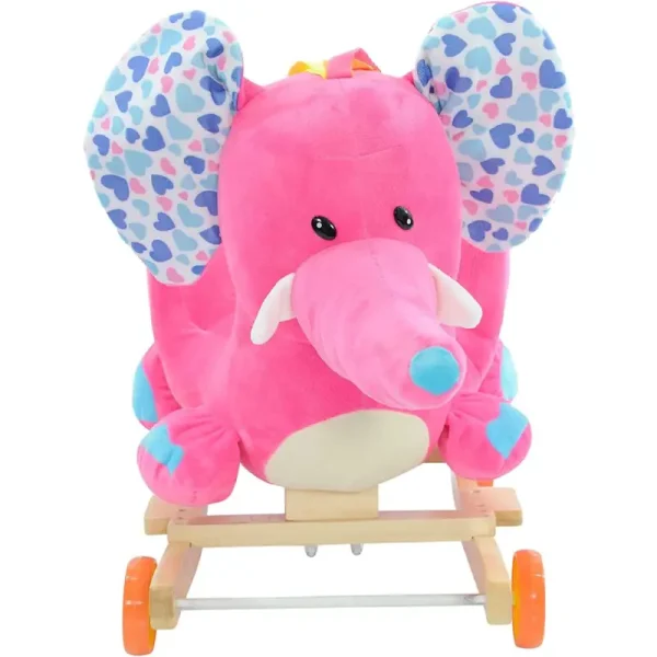 Caracteristici Elefant Roz Balansoar Muzical cu Spatar si Roti :