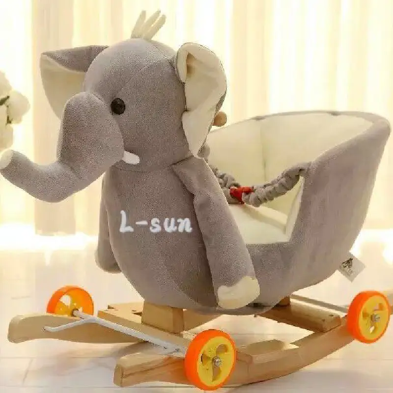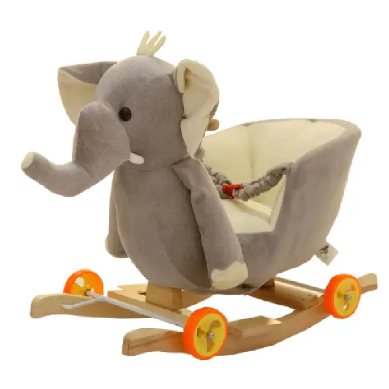 Elefantel Balansoar Muzical cu Sanie Spatar si Roti – Plus Moale Lemn si Functii Interactive