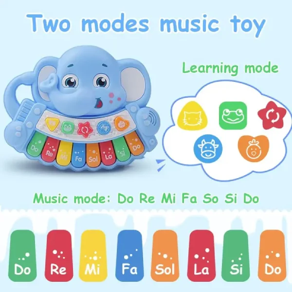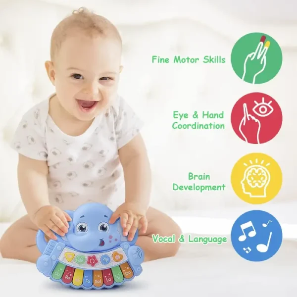 Elefantelul muzical este jucăria perfectă pentru copiii mici, oferind o experiență completă de învățare și distracție.