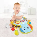 - Jucării interactive atașate – Pernuța include jucării colorate și diverse forme, care încurajează copilul să apuce, să tragă și să exploreze, stimulând coordonarea mână-ochi și motricitatea fină.