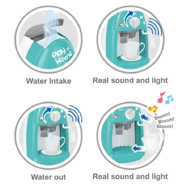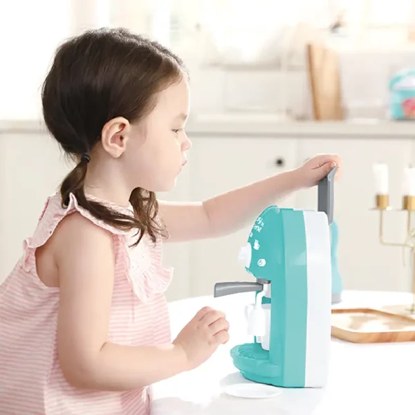 Cu design modern și funcții interactive – lumină, muzică și efect de aburi – acest espressor de jucărie le oferă celor mici ocazia să imite adulții și să se joace „de-a cafeneaua”.