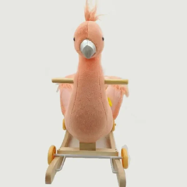 - Sanie cu roți: Flamingo-ul este montat pe o sanie cu roți, permițându-i să se deplaseze înainte și înapoi, ceea ce poate fi distractiv pentru copii.