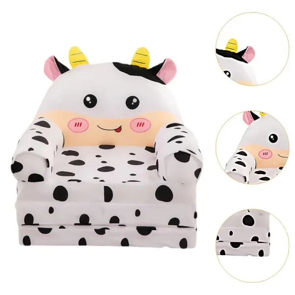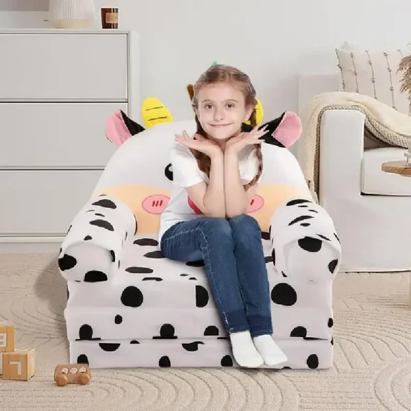 Acolo intră în scenă “Văcuța Veselă” – un fotoliu adorabil, moale și inteligent, care se transformă în doar câteva secunde într-un culcuș cald și protector.