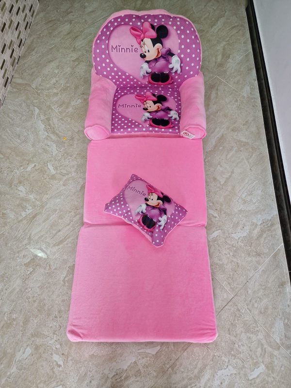 Fotoliul extensibil pentru copii are forma personajului preferat al celor mici,a lui Minnie Mouse.