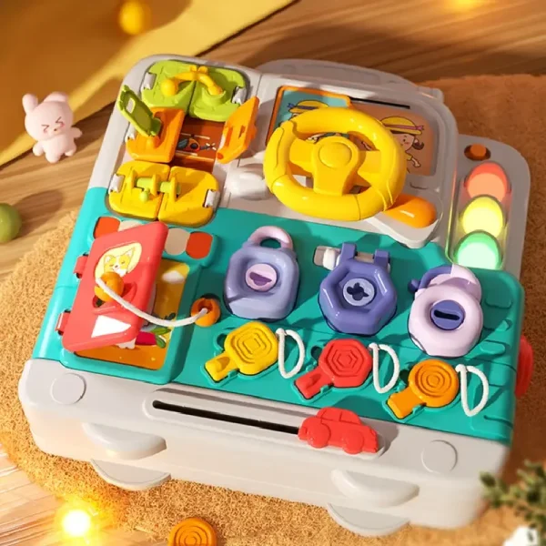 Butoane, rotițe și comutatoare pentru dezvoltarea coordonării și a curiozității.