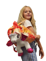 Ghiozdanul din plus are ca imagine indragitul personaj din desene animate ,Unicornul vesel,in format