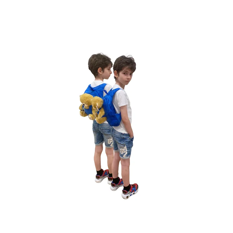 Acestea sunt ghiozdane moi, avand atasat o figurina ursulet, confecționat din material textil moale și plăcut la atingere.