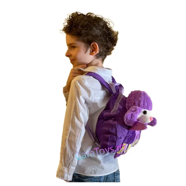 Acestea sunt ghiozdane moi, în formă de animalut, confecționat din material textil moale și plăcut la atingere.