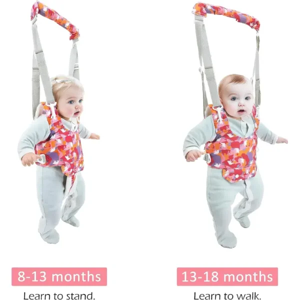 Fabricat din materiale moi și rezistente, cu bretele reglabile și mâner confortabil, îți permite să ghidezi bebelușul fără să te apleci – adio dureri de spate!