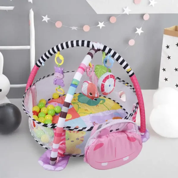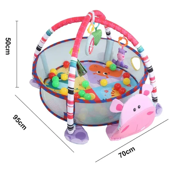 - Design tematic de hipopotam: Centrul de activități are un design cu temă de hipopotam, inclusiv culori și modele care atrag atenția bebelușilor.