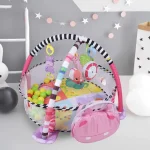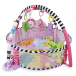 - Dezvoltarea abilităților motorii: Bebelușii pot ajunge, lovi și atinge jucăriile și elementele din centrul de activități, contribuind la dezvoltarea abilităților motorii fine și la coordonarea ochi-mână.