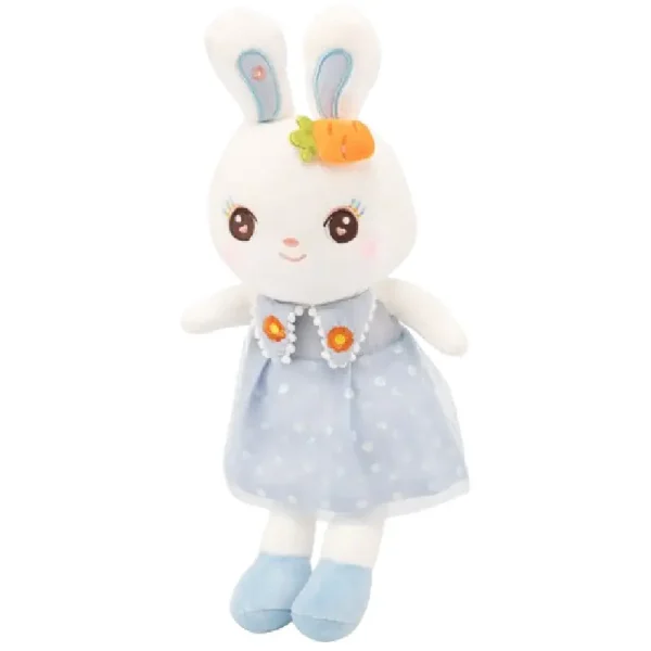 Realizat din pluș premium, hipoalergenic și catifelat la atingere, este perfect atât pentru joacă, cât și pentru momentele de relaxare. Rochița roz cu imprimeu delicat și morcovul simpatic adaugă un strop de personalitate și originalitate.