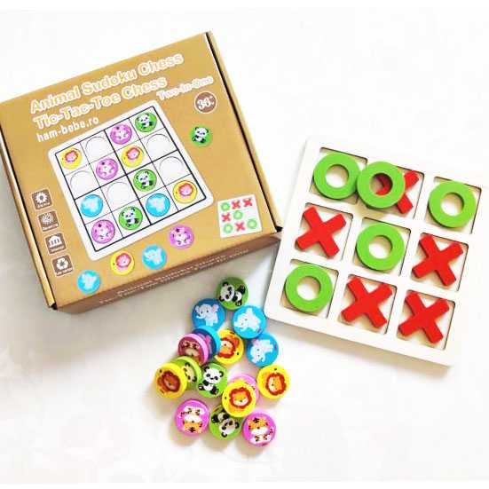 Joc 2in1 X si O si Sudoku Animale face parte din categoria jucariilor Montessori ca material didcatic pentru educatie timpurie.