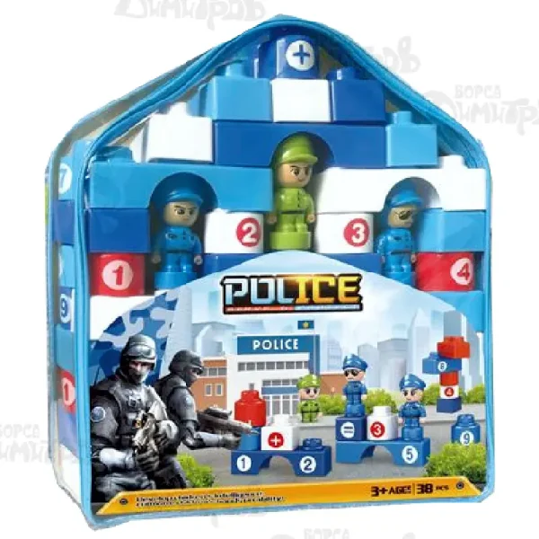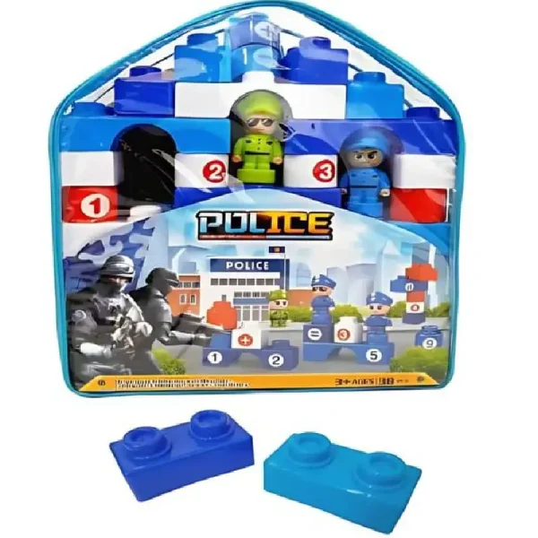Joc Caratoys de Construcție tip Lego cu Politisti – Cuburi Mari Colorate cu Figurine pentru Copii 3 ani+