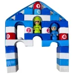 Cuburile mari tip lego, colorate și ușor de manevrat, îi permit să ridice clădiri impunătoare, turnuri de observație și porți de acces, în timp ce figurinele incluse adaugă viață și realism fiecărei povești.