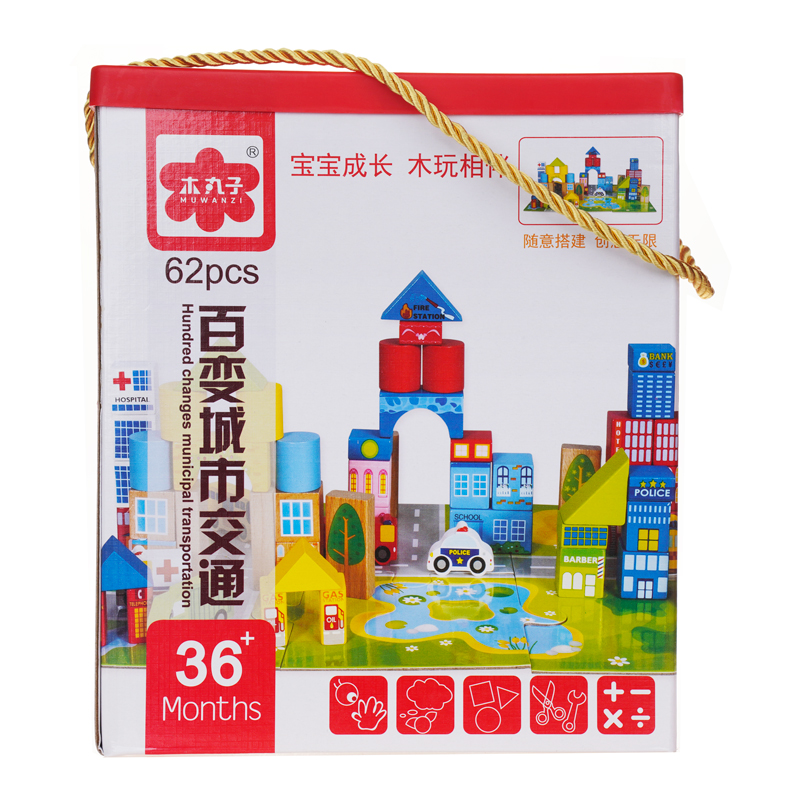 Joc Constructie Lemn Transport Municipal 62 piese pentru scena traficului urban contine tot felul de msini,mari si mici, si semnele de circulatie. Semnele de circulatie pot oferi copiilor o intelegere preliminara a mediului de viata. Ajuta la constientizarea copiilor privind siguranta in trafic.