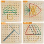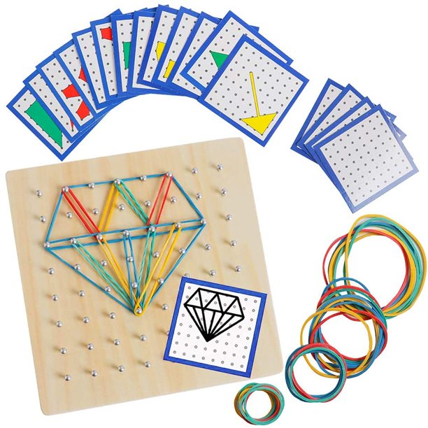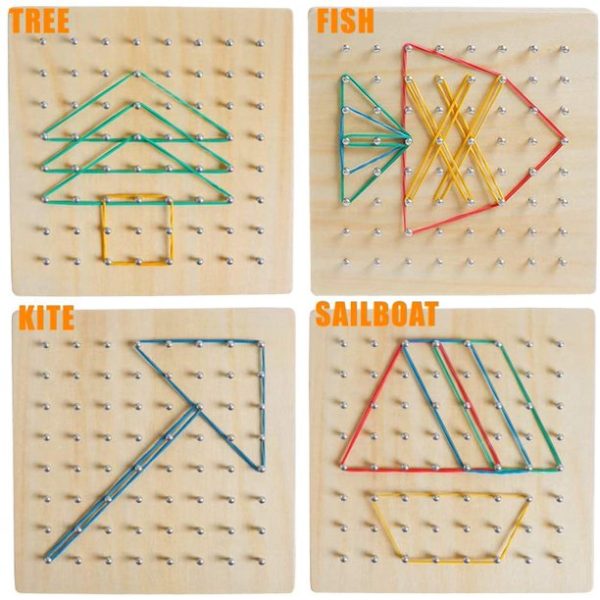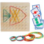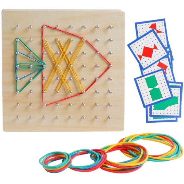 Joc Creativ Montessori Lemn Geoboard cu Elastice ajuta la dezvoltarea capacitatii de concentrare,a creativitatii si a inteligentei.