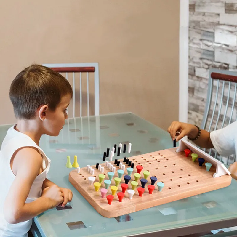 Șah din Lemn cu Pioni Colorați: Șahul este un joc de strategie clasic cu două personaje și reguli complexe. Cu toate acestea, varianta „cu pioni colorați” se referă la o versiune a șahului în care piesele tradiționale din lemn sunt înlocuite cu pioni colorați. Aceasta poate fi o opțiune atractivă pentru copii sau pentru cei care doresc să aducă o notă de distracție și estetică în joc.