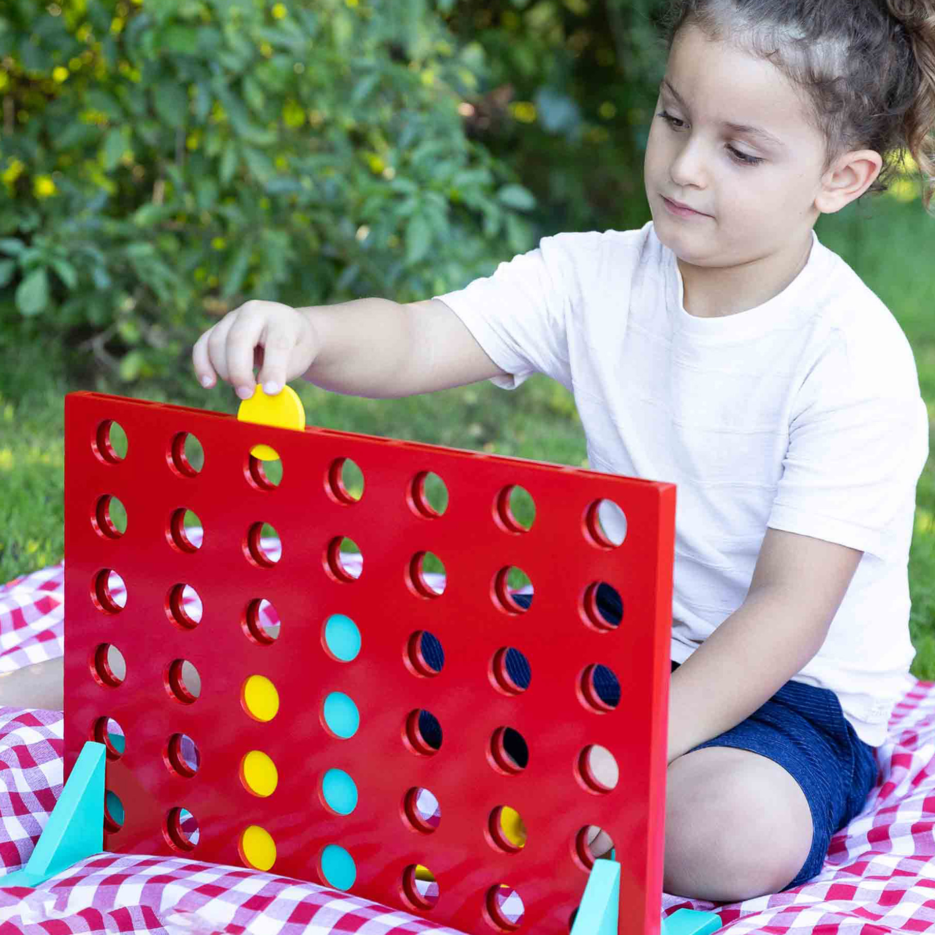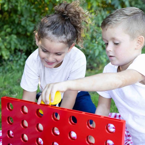 Patru in rand XXL! Acest cadru din lemn din 3 parti, in format XXL, ofera copiilor jocul clasic intr-o varianta marita. Perfect pentru curtea din spate! Cele 42 de jetoane de joc vin in doua culori si asigura o dupa-amiaza de strategie si distractie.