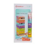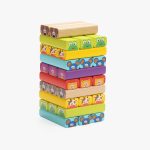 Joc din Lemn Turnuletul cu AnimaleJoc din lemn, extrem de distractiv. Acesta dezvolta dexteritatea si motricitatea copiilor. Setul include 51 de piese din lemn, viu colorate, 6 piese reprezentand figuri de animalute, 24 de carduri, un zar si intrusctiuni de joc. Jocul presupune contruirea turnuletului, iar apoi aruncat zarul colorat cu animalute. Animalul de pe zar, iti va arata ce bloc trebuie eliminat. Blocurile trebuie sa fie aranjate unul deasupra celuilalt pana cand turnul se prabuseste. Dimensiuni zar: 2×2 cm , piese: 7,5 x 1,5 x 2,5 cm