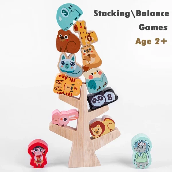 Joc Echilibru Montessori Stivuire Copacel cu Animale