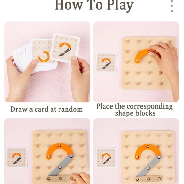 În ansamblu, un joc educativ din lemn multifuncțional Geoboard cu forme este o resursă educațională valoroasă care stimulează dezvoltarea copiilor în mai multe domenii, inclusiv matematică, abilități motorii fine, creativitate și gândire spațială.