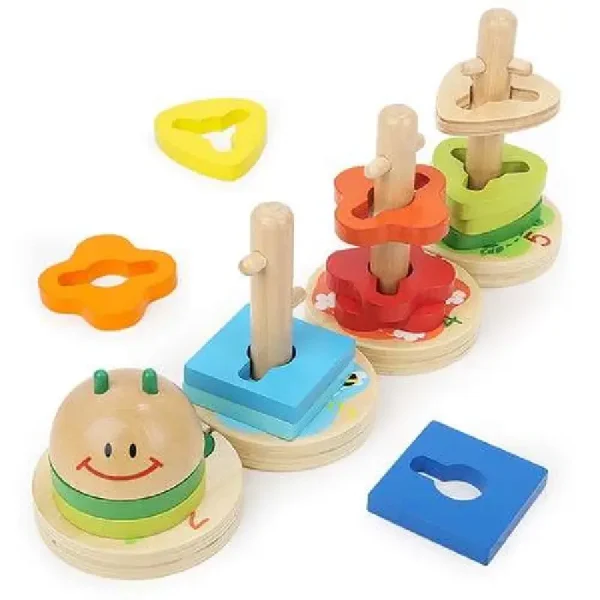 - Potrivire și Îmbinare: Piesele se potrivesc doar cu locurile corespunzătoare de pe corpul omidei. Această activitate dezvoltă abilitățile de potrivire și îmbinare, precum și coordonarea ochi-mână.