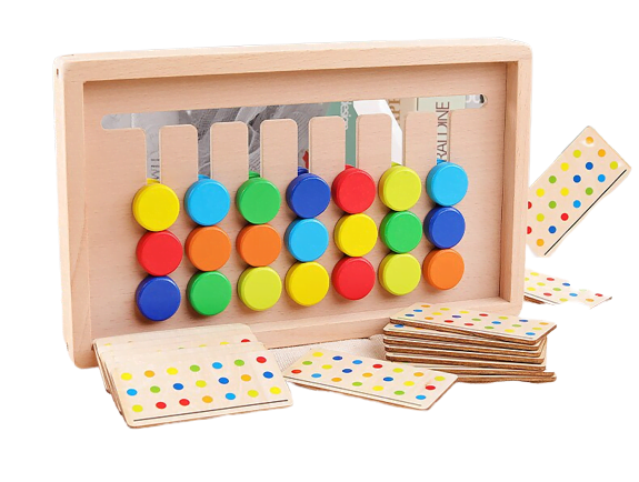 Este un joc al asocierii si logicii format dintr-un supot din lemn cu 7 canale labirint. Pe cele 7 canale ale jocului Montessori se afla piese mobile rotunde ce reprezinta culori.