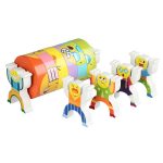 - contine 6 clovni din lemn care se pot stivui in diverse moduri