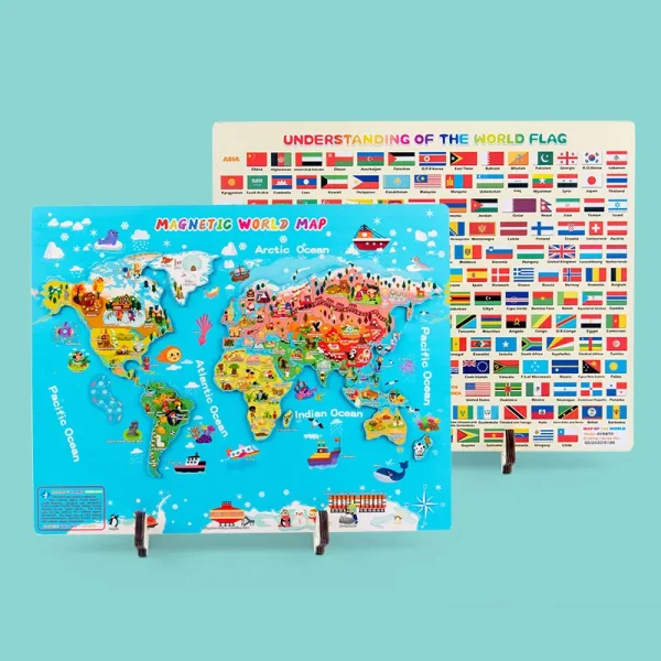 Joc Educativ Puzzle Magnetic din Lemn Harta Lumii