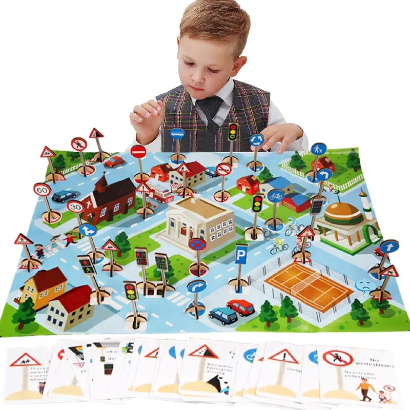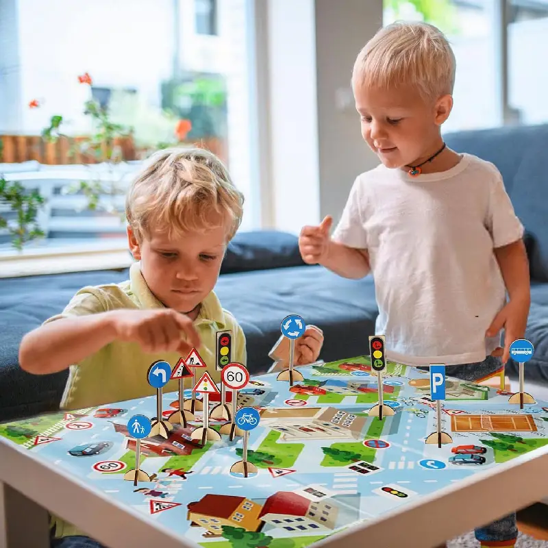 Un joc educativ ideal pentru acasă sau la grădiniță, care îi ajută pe cei mici să înțeleagă semnele de circulație, culorile semaforului și regulile drumului, dezvoltând atenția și gândirea logică.
