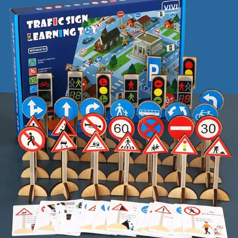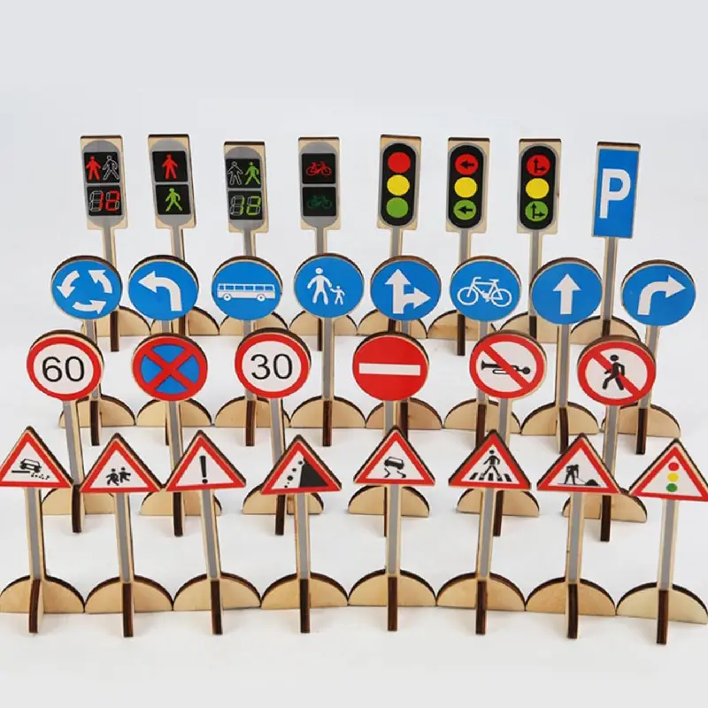 26 de semne de circulație din lemn, colorate și ușor de recunoscut.