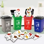 Setul contine 4 mini-tomberoane de sortare,care te ajuta sa colectezi separat si 100 carduri de joc fiecare avand o imagine insotita de text in limba engleza cu cate un obiect care ajunge la gunoi si trebuie reciclat.